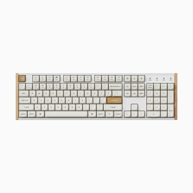 Keychron K10 HE로 게임과 타이핑 경험을 혁신적으로 바꿔보세요. 클래식한 기계식 느낌과 최첨단 자석 기술을 결합하여 뛰어난 성능을 자랑하며, 우아한 자연 로즈우드 악센트로 디자인이 강화되었습니다.