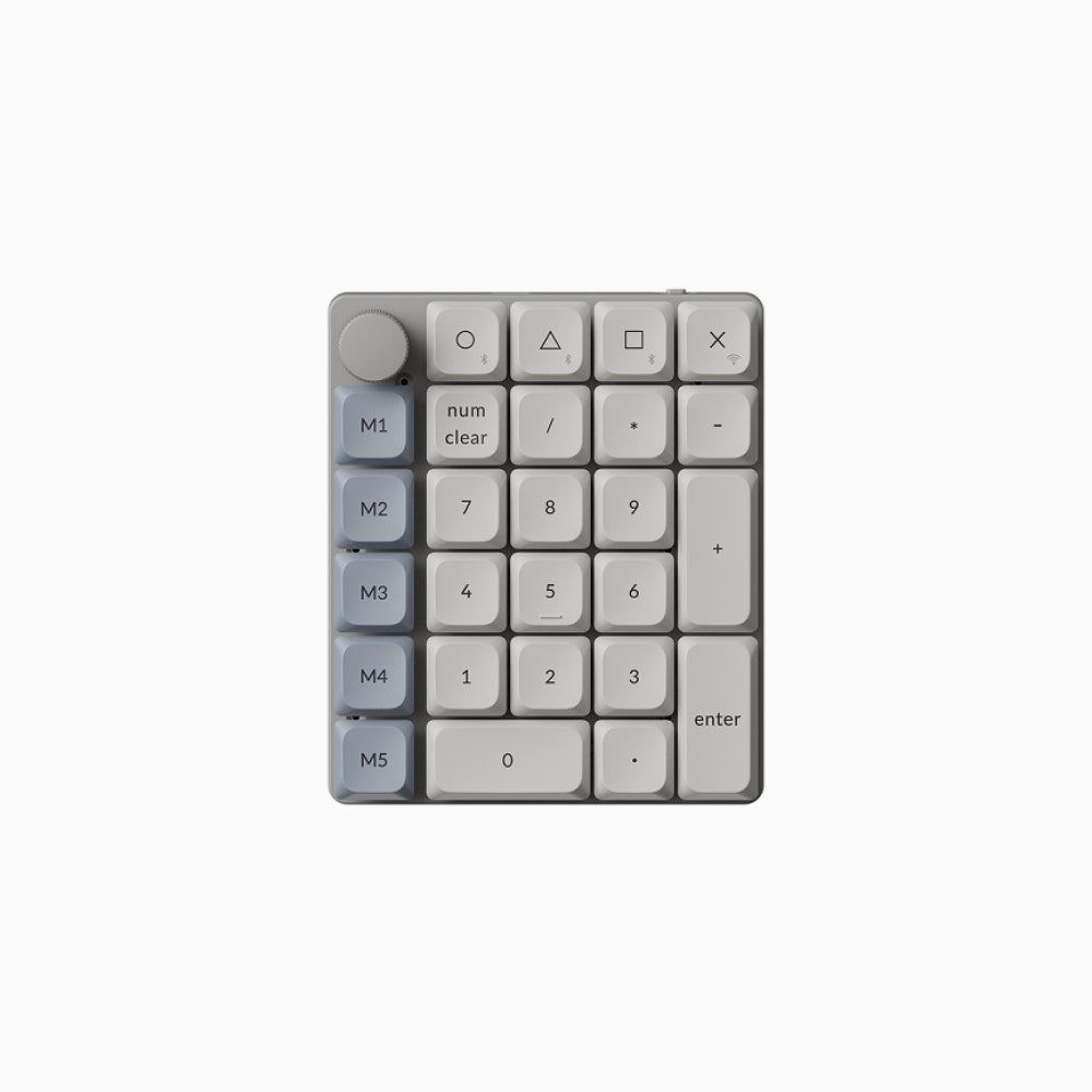 K0 PRO Max는 매크로키와 좌측의 노브를 갖춘 로우프로파일 커스텀 넘버패드로,