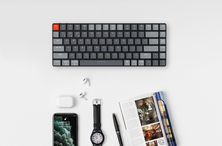 K8는 87 개의 키를 갖춘 80% 레이아웃으로, 컴팩트 텐키리스 배열의 키보드입니다.