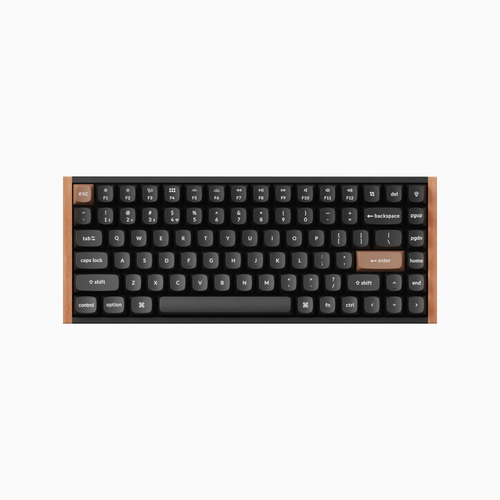 라이트 또는 다크 마감재로 제공되는 커스텀 우드 사이딩으로 키보드를 한층 특별하게 꾸며보세요.
