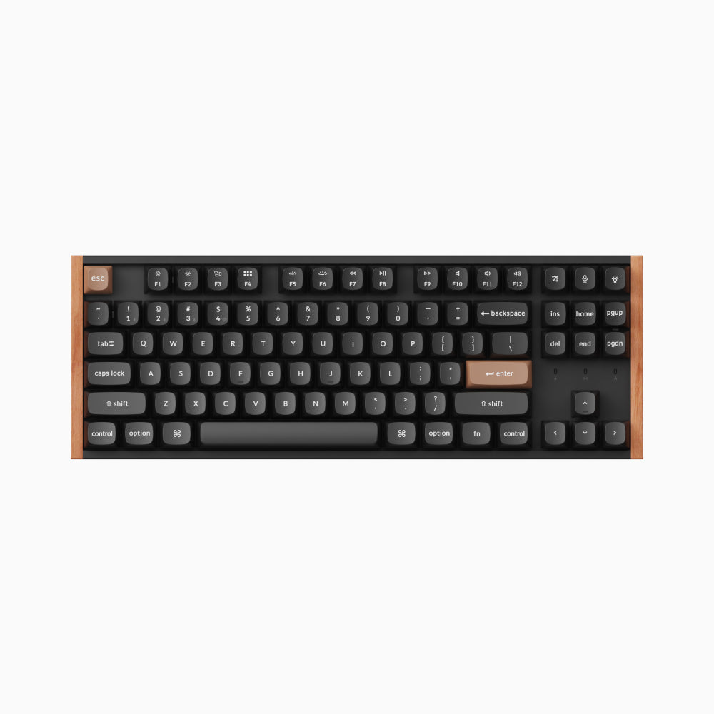 라이트 또는 다크 마감재로 제공되는 커스텀 우드 사이딩으로 키보드를 한층 특별하게 꾸며보세요.