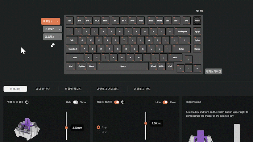 지원*eX75 HE는 Keychron Ultra-fast Lime Magnetic Switch 전용 |