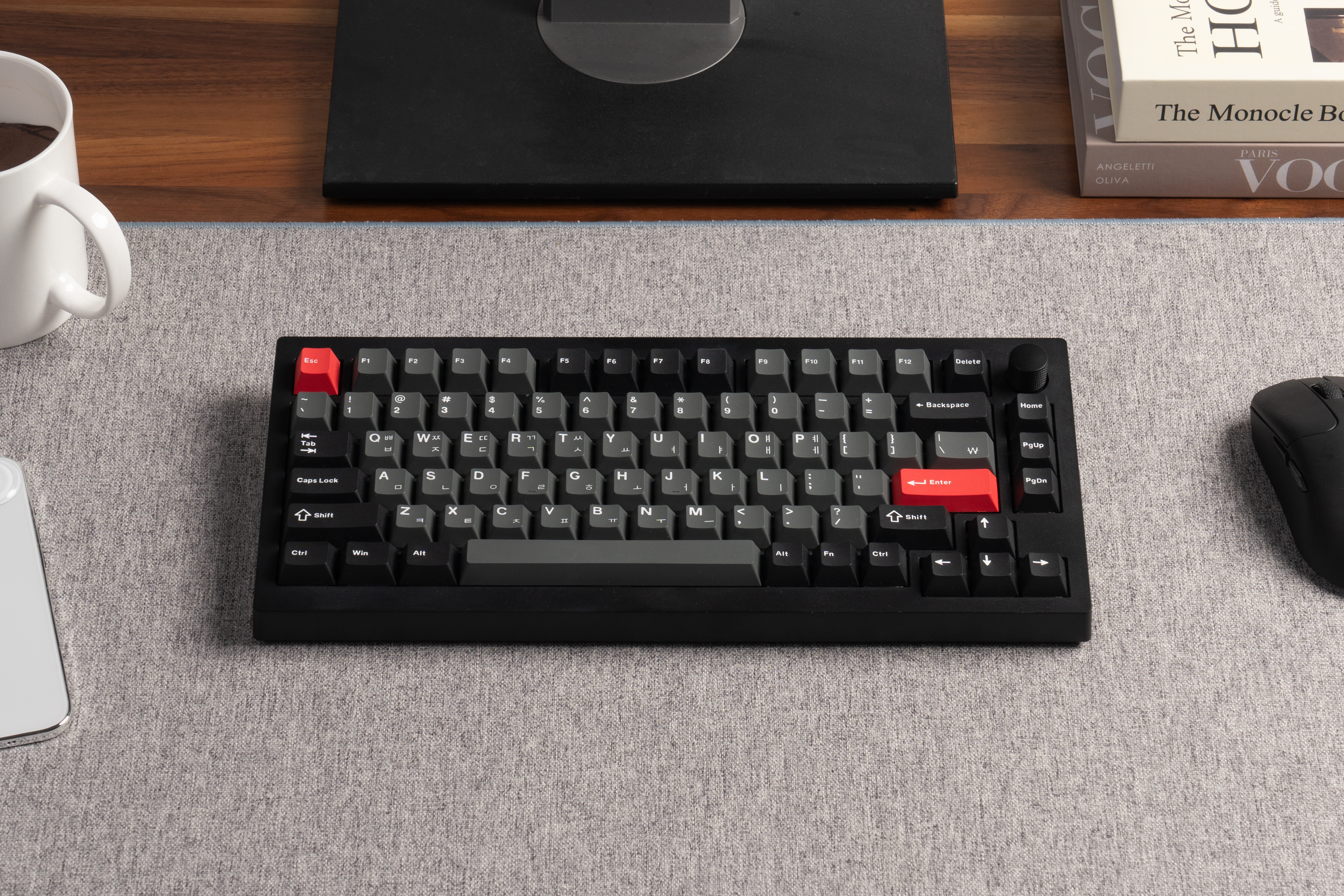 ex75 8K HE는 75% 배열로 TKL(텐키리스) 대비 30% 더 작은 공간을 차지하면서도 방향키, F열, Knob/Home/PgUp/PgDn 등 필수 기능은 모두 유지합니다.
